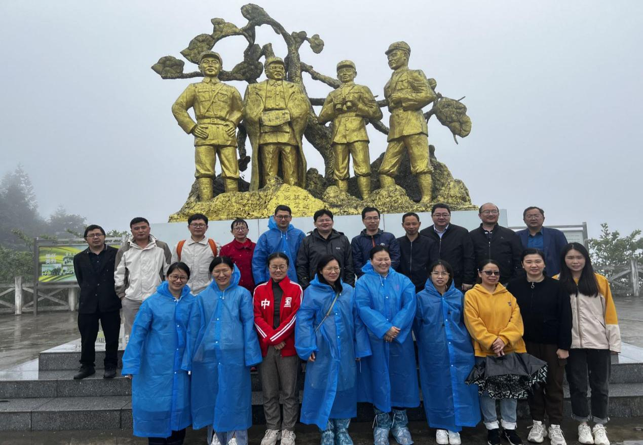 当日,党员同志们冒雨重走长征路,瞻仰红色遗迹。驻足在阳明山红军纪念亭,当年红六军转战阳明山,革命烈士抛头颅、洒热血的画面一幕幕展现在学院教师党员眼前。行至红六军团领导人群雕前,党员们感受革命先烈的伟大,缅怀革命前辈的丰功伟绩。