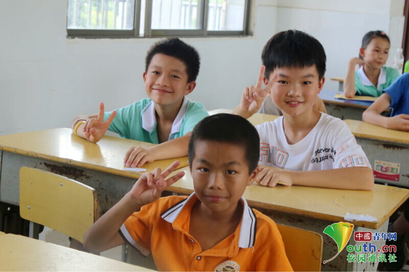 图为学生面向志愿者的镜头露出开心的笑容。中国青年网通讯员 刘德江 摄