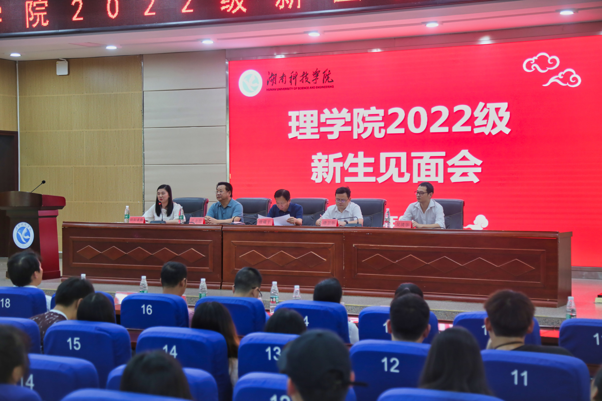本网讯(通讯员 罗宗爱)9月30日,理学院2022级新生见面会暨团学联招新大会在潇湘大讲堂举行,全体院领导、教授博士代表、系主任、各年级辅导员以及新生班主任、副班主任出席,全体2022级学生参加,见面会由党总支副书记、副院长欧阳素勤主持。