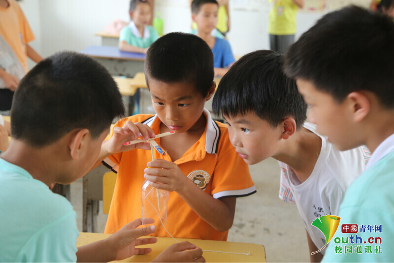 图为夏令营学员在进行大气压强实验。中国青年网通讯员 周亮君 摄
