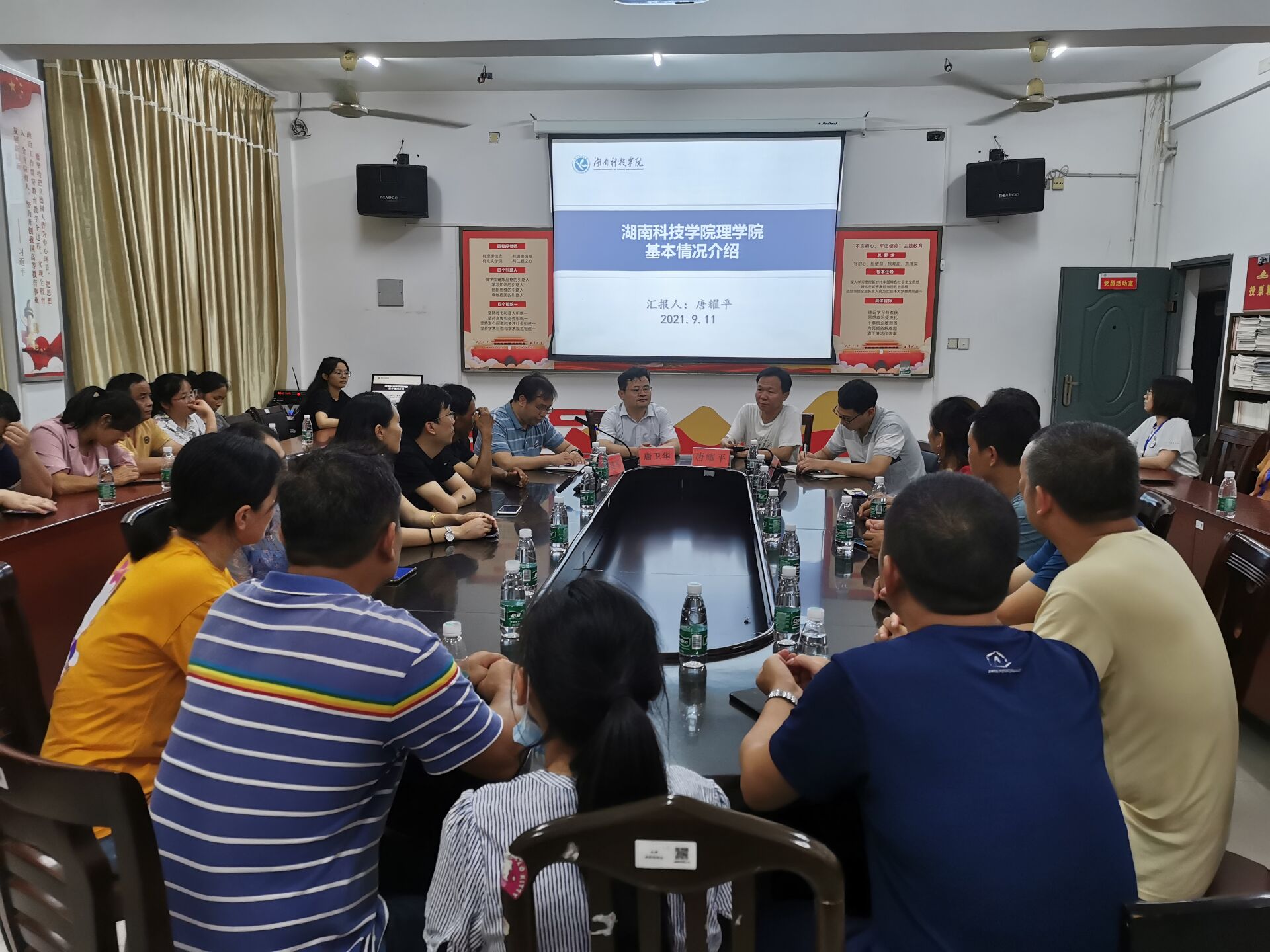本网讯(通讯员 肖雪)为了搭建家校沟通的桥梁,加强家校联系与合作,促进学生健康成长、全面发展,9月11日晚,理学院于明理楼308召开2021级新生家长交流座谈会。理学院院长唐耀平、党总支书记唐卫华、党总支副书记黎建军等院领导、2021级新生辅导员、新生班主任及30余名家长代表出席,会议由黎建军书记主持。