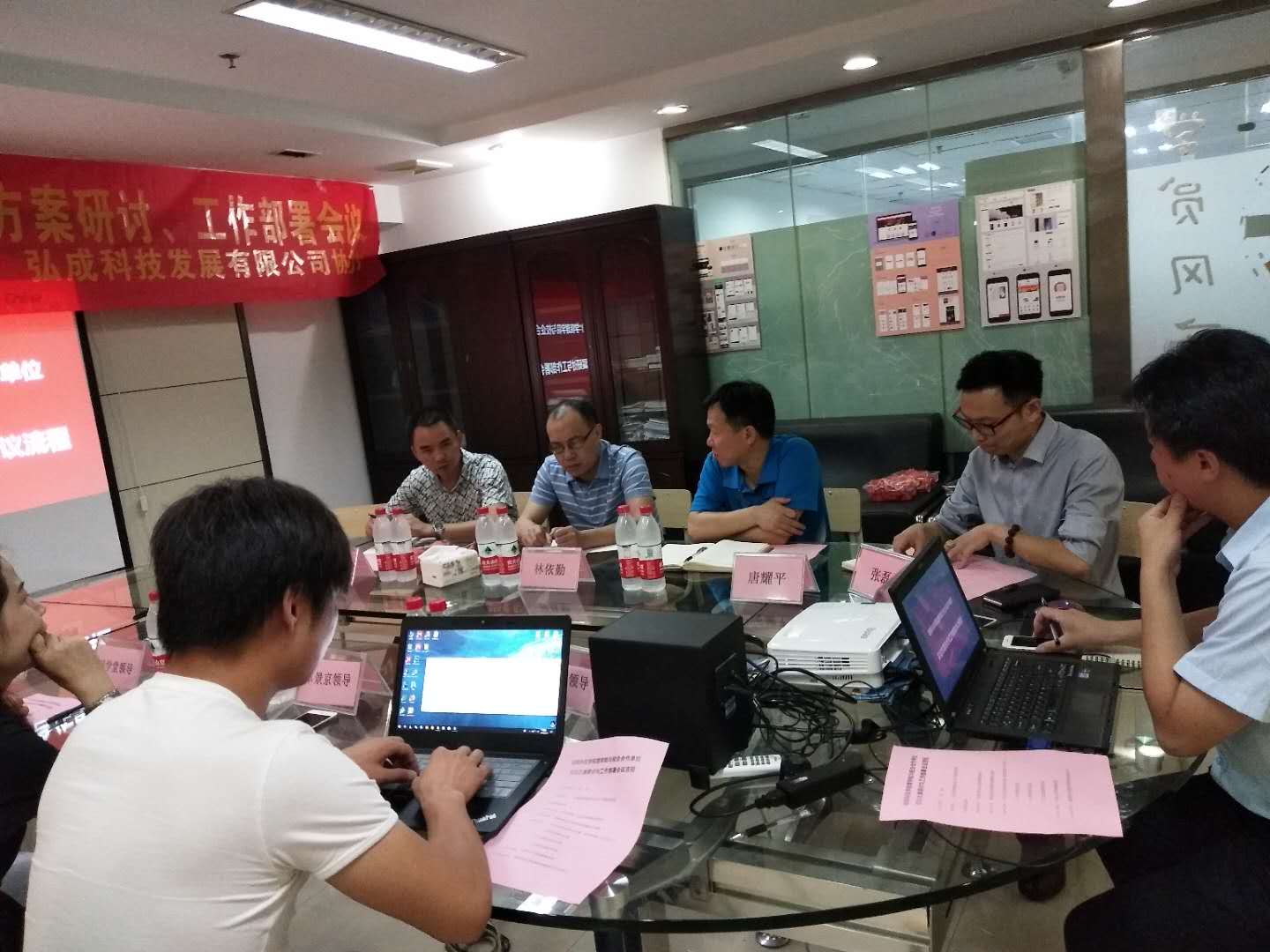 6月14日,vwin德赢ac米兰官方网理学院与校企合作单位实训方案研讨与工作部署会议,在弘成科技湖南分公司会议室举行。尚学堂,卓景京,弘成科技三家培训机构教学总监与我院唐耀平、林依勤、刘铮三位老师与会,弘成科技湖南分公司营销总经理唐胜主持会议。