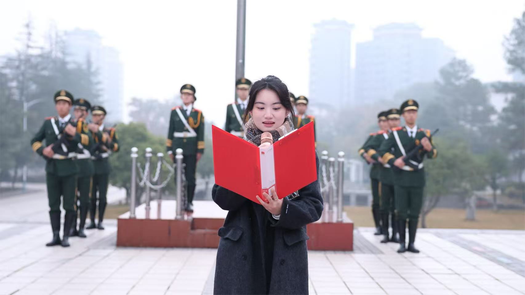7点整,升旗仪式正式开始。国旗护卫队护送国旗入场,国歌声中五星红旗升起,全体师生肃立行注目礼。仪式上,学生代表数应2302班吴宜超同学以“争做自己人生掌舵者”为题,分享了自己在学业、学生工作、社会实践中斩获多项荣誉的经历,并以屠呦呦、袁隆平等科学家的故事为例,呼吁同学们以自强不息、德才兼备为准则,拓宽视野、勇于尝试,夯实人生根基。接着,理学院党总支副书记欧阳素勤在国旗下讲话,围绕“点亮心灯,照亮成长之路”展开,强调心灯需以理想为芯、学习奋斗为燃料、品德人格为效、家国责任为向,鼓励学予以青春奋斗照亮个人与国家未来。接着,活动全程氛围庄重有序,同学们站姿端正、专注投入,展现出积极向上的精神面貌。