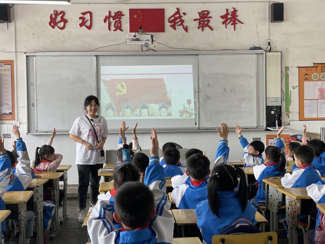 vwin德赢ac米兰官方网马克思主义学院通过与中山路小学合作,开展百年追梦之“不忘初心讲党史,红色故事铭党恩”主题实践活动,做到“一周一故事,一人一讲台”,鼓励大学生党员上台讲党课,重温中国共产党近百年的光辉历程。培养学生从小认识党旗,了解党史,铭感党恩,真正做到“润物细无声,少年心向党。”