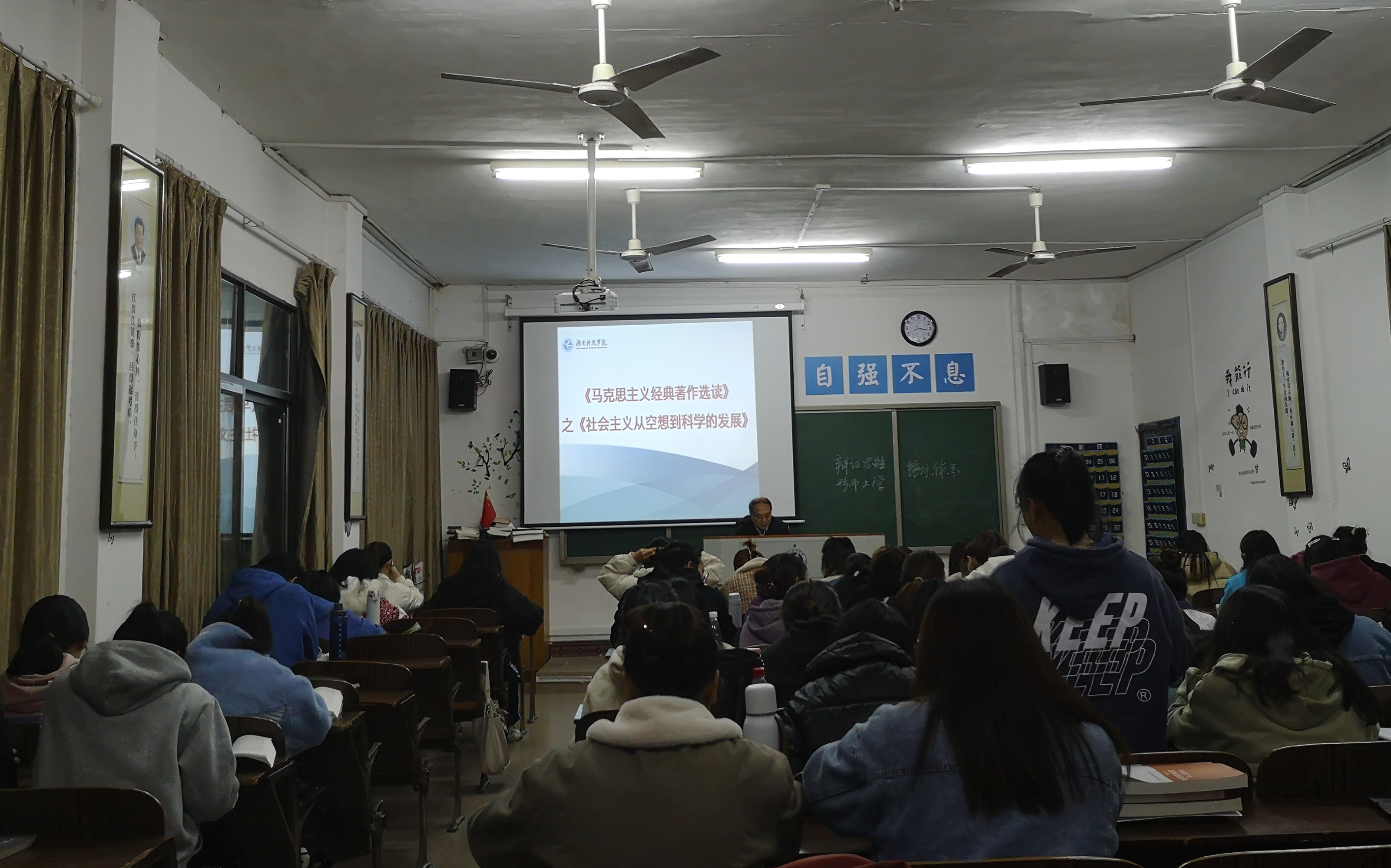 11月12日下午及晚上,在周小毛教授的《社会主义从空想到科学的发展》课堂上,同学们声情并茂地朗读原著,周小毛教授结合实际深入浅出地向大家讲授了马克思主义唯物史观的基本原理,阐述了科学社会主义是资本主义矛盾和冲突在工人阶级头脑中的反映,资本主义的矛盾和冲突是科学社会主义产生的物质经济根源,帮助学生理解和掌握其中内涵及深意。“周教授的讲课深化了我们对马克思主义相关问题研究的认识和了解,提升了我们的专业知识和学科素养,更激发了我们应该不断深入学习和研究马克思主义的信心与决心。”马克思主义学院思政1902班胡世晶同学收获满满地说。