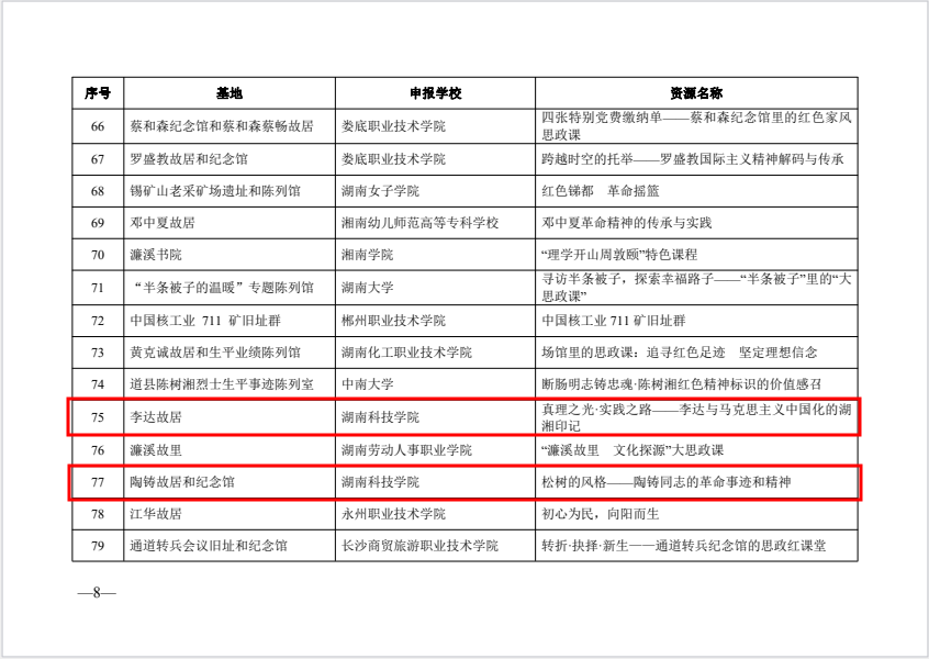 此次优质教学资源遴选面向全省各高校及红色教育基地联合申报,经专家评审,最终确定85个入选项目。我院两项成果同时突围,既彰显了学院在“大思政课”建设领域的系统布局与创新实践,也体现了对湖湘红色资源的深度挖掘与活化运用。