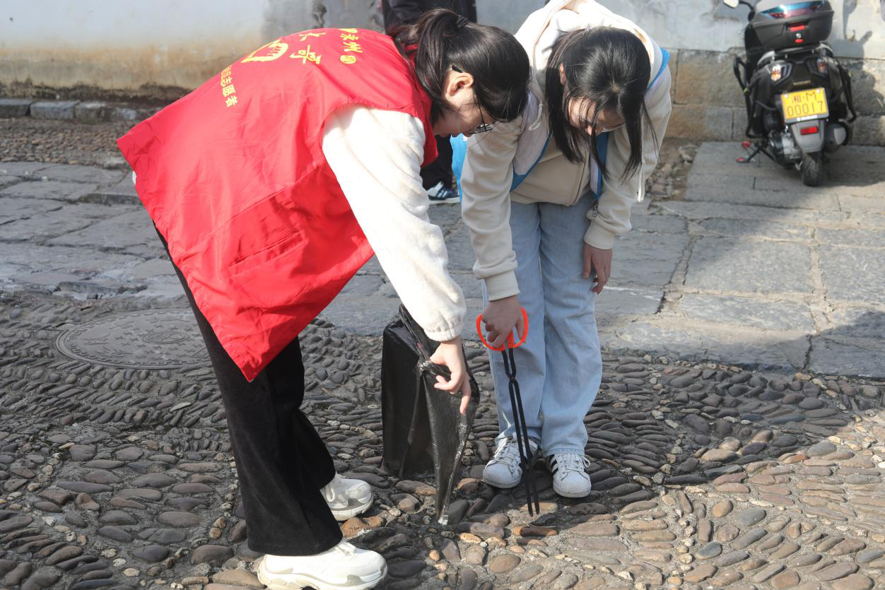 志愿者一抵达社区,就一手拿着垃圾钳,一手拎着垃圾袋,认真地清理路人丢弃的烟蒂、碎纸屑、瓜果皮壳、生活垃圾等。此外,志愿者们还进行了垃圾的分类,将可回收垃圾、有害垃圾和普通垃圾进行分类。在入党积极分子们地毯式搜索下,柳子庙周围的垃圾被捡拾的干干净净。