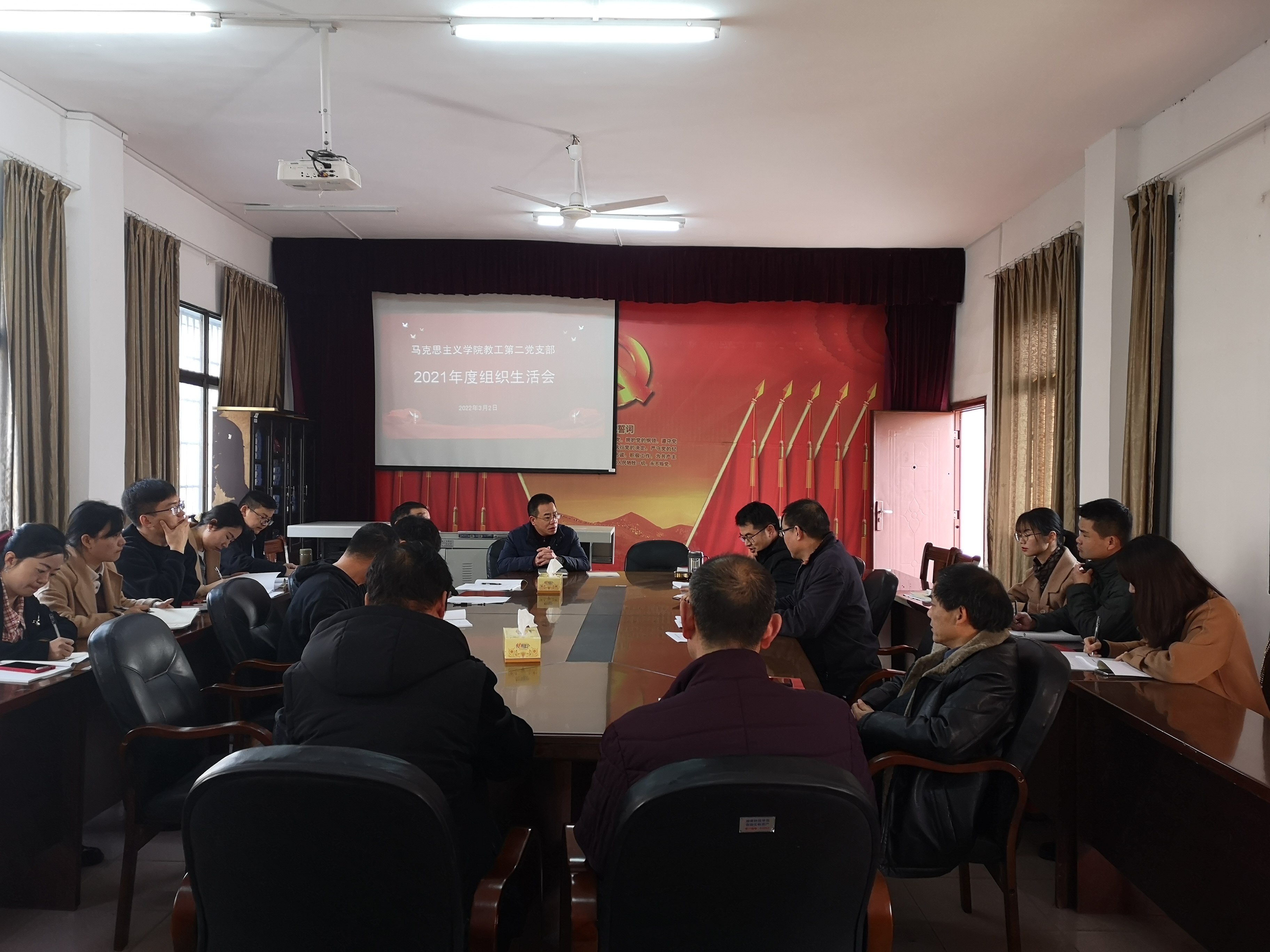 本网讯(记者 刘威 陈伟琳)日前,马克思主义学院教工第二党支部2021年组织生活会在鹤鸣楼405会议室召开。马克思主义学院党总支书记郑向晖、副院长杨军出席会议,马克思主义学院教工第二党支部除1名党员请产假缺席外,其余党员准时参加会议。马克思主义学院教工第二党支部书记何志平主持会议。