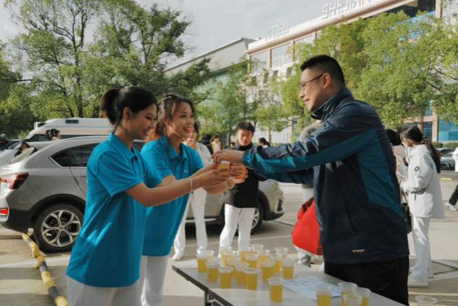 表演环节结束后,学院党总支书记王博亲切慰问了参演同学,并为大家送上热气腾腾的姜茶。这份细致的关怀,在微寒的清晨传递出学院的浓浓温情,极大地增强了同学们的归属感与集体荣誉感。