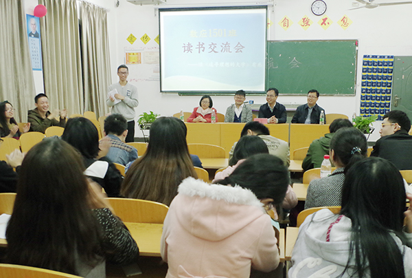 本网讯 (通讯员 谢娟)10月31日晚,理学院数应1501班在明理楼211举行读书交流会,校党委书记陈弘应邀欣然来到交流现场,与同学们共同分享读书心得。