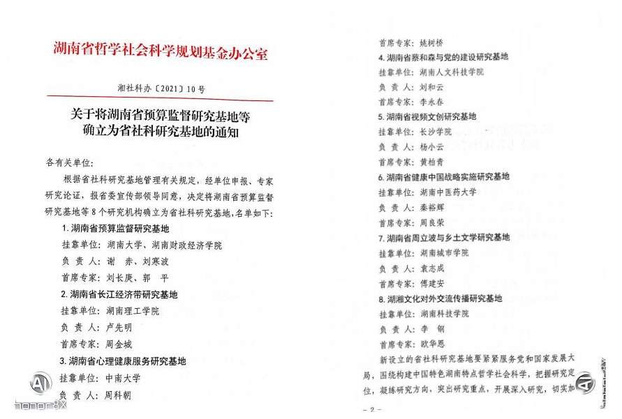据悉,本次全省只有8个基地获批为湖南省社科研究基地。“湖湘文化对外交流传播研究基地”获批为湖南省社科研究基地将有力地促进vwin德赢相关学科的建设与发展。