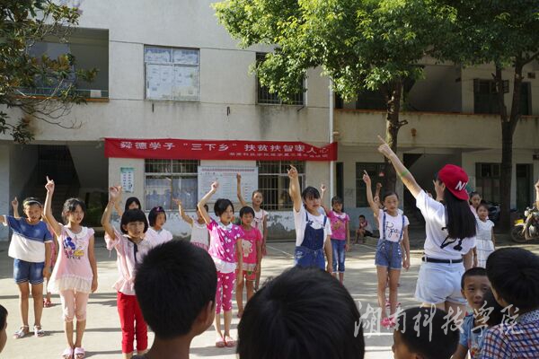 7月3日,理学院“理学星空”服务调研团前往新田潮水铺村进行为期5天的教育扶贫“三下乡”活动。志愿团一行15人分别组织义务支教、爱心捐赠、专题调研、宣传文化、卫生知识、播放爱国教育电影、探望孤寡老人、知识竞赛、趣味运动会、文艺汇演等各项活动。