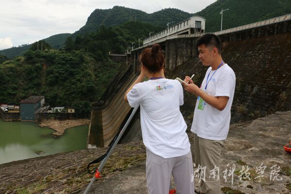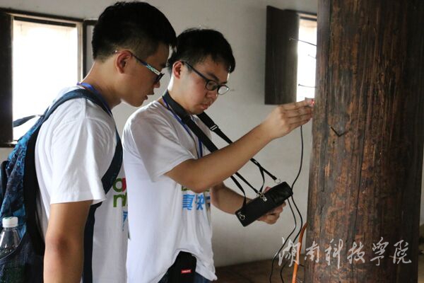 在江永县政府相关负责人和指导老师的带领下,实践服务团队调研了源口水库及首家大院、勾栏瑶寨、上甘棠古村落等部分古建筑群。在源口水库,志愿者们对源口大坝的填土进行了样本采集,并现场测量了大坝的沉降情况和对水库上方的三座悬索桥进行了安全检测。调研古建筑群时,志愿者们使用激光测距仪、水分仪、裂缝测宽仪、经纬仪等专业仪器测定了古建筑群落的木质结构含水率、古建筑的水平角、竖直角和缝隙宽度、古桥梁的跨度等数据,并提出可行性建议。