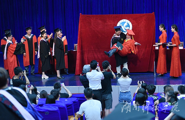 “校长亲自为我们拨流苏,我们很感动。” 美术与艺术设计学院毕业生申浩强更是按捺不住内心的激动,在现场把校长给抱了起来。