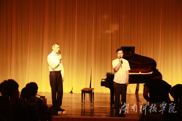 本网讯(通讯员 方新佩 潘莹)6月7日晚,德籍钢琴教授恩斯特·诺尔丁·豪夫钢琴讲座式音乐会在音乐与舞蹈学院小音乐厅举行。党委书记陈弘、校长曾宝成、副校长宋宏福,省音乐家协会副主席、永州市音协主席唐孟冲等应邀聆听音乐会。