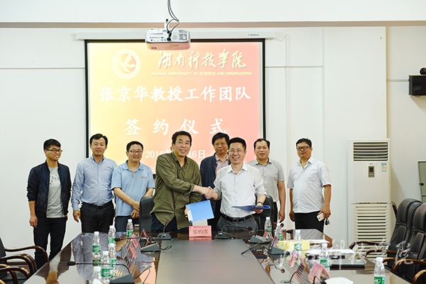 本网讯(记者 张云芳 摄影 何帅文)5月16日,学校在行政办公楼六楼会议室举行张京华教授工作团队签约仪式。校长曾宝成、副校长郑山明及人事处处长李勇、科技处处长杨金砖等部门领导出席仪式。随着校长曾宝成与张京华教授的亲切握手,标志着vwin德赢2016年引进高层次人才再获佳绩。