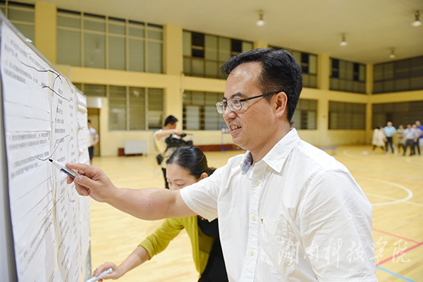 此次体验式团体活动由党委组织部党支部牵头,党政办党支部、党委宣传统战部党支部、纪委党支部参与。活动主要包括“准确连接”、“快速选择”、“集体智慧”和“自我反省”四个环节。活动正式开始前,全体党员被随机分成两个队,分别选出队长,确定队名,即“四有队”和“发展队”,创建了各自团队文化。“准确连接”环节通过准确连接党章相关知识,提高全体党员对党章的知识掌握;“快速选择”环节则通过完成碎片化知识多项选择,检验团队成员对党章党规理解的程度,培养团队协作意识;“集体智慧”环节两队群策群力,发挥集体的智慧,围绕《中国共产党章程》的四大亮点展开讨论,每队代表以图文并茂的形式对展示内容进行现场宣讲;“自我反省”环节要求党员对照党章查找自身存在的不足,深入分析原因,明确努力的方向。