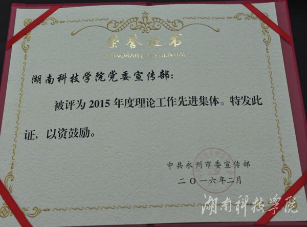 本网讯 中共永州市委宣传部下发《关于表彰2015年度理论工作先进集体和先进个人的决定》(永宣办〔2016〕2号),vwin德赢党委宣传部被评为先进集体。全市共评选出6个理论工作先进集体。