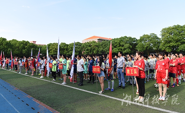 本网讯(记者 刘忠奇 肖浪 摄影 何帅文)5月7日下午,第二届“恒联杯”足球联赛开幕式在田径场举行。校党委书记、校足球运动领导小组组长陈弘,校长曾宝成,副校长、校足球运动领导小组副组长李常健、程智开及长沙恒联计算机有限公司董事长邓自义等领导和嘉宾出席,并为此次联赛开球。开幕式由程智开主持。