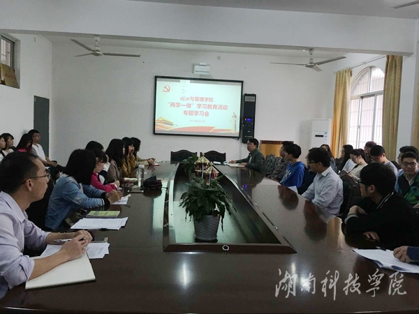 本网讯(通讯员 莫远胜)4月29日,经济与管理学院党总支在立信楼213会议室组织毕业生党员开展“两学一做”教育,对即将走出学校、走上社会的党员进行最后一次集中培训教育。