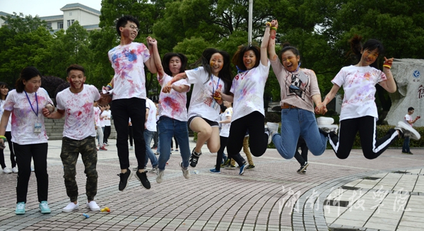本网讯(记者 何霞 摄影 陈晨 姚盛明)4月23日下午,由校团委、传媒学院、校乐跑社团共同举办的“青春不留白”彩跑活动在学校文化广场举行。副校长程智开、校团委书记杨涛、传媒学院院长杨增和受邀与128名选手共同参与此次活动。