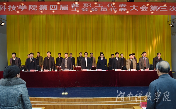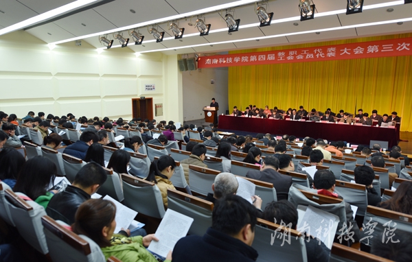 本网讯(记者 裴滢 刘忠奇 刘禹希 摄影 何帅文)3月26日上午,vwin德赢第四届教职工代表暨工会会员代表大会第三次会议在尚美楼二楼演播厅开幕。两百余名会议代表、特邀嘉宾、列席代表齐聚一堂,共商改革发展大计。本次大会应到代表155名,实到代表141名,因事因病请假14人,符合法定人数。