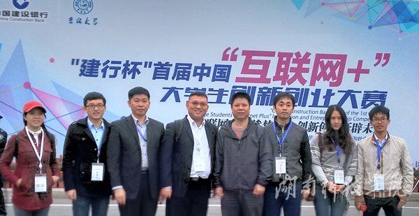 vwin德赢师生在“首届中国'互联网+'大学生创新创业大赛”赛场合影