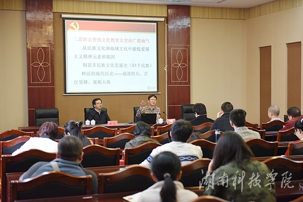 随后,谭伟平作题为《注重问题导向,强化立德铸魂》的专题讲座,生动活泼地阐释了地方二本院校充分利用地方文化资源,服务地方,扩大学校的社会影响力。