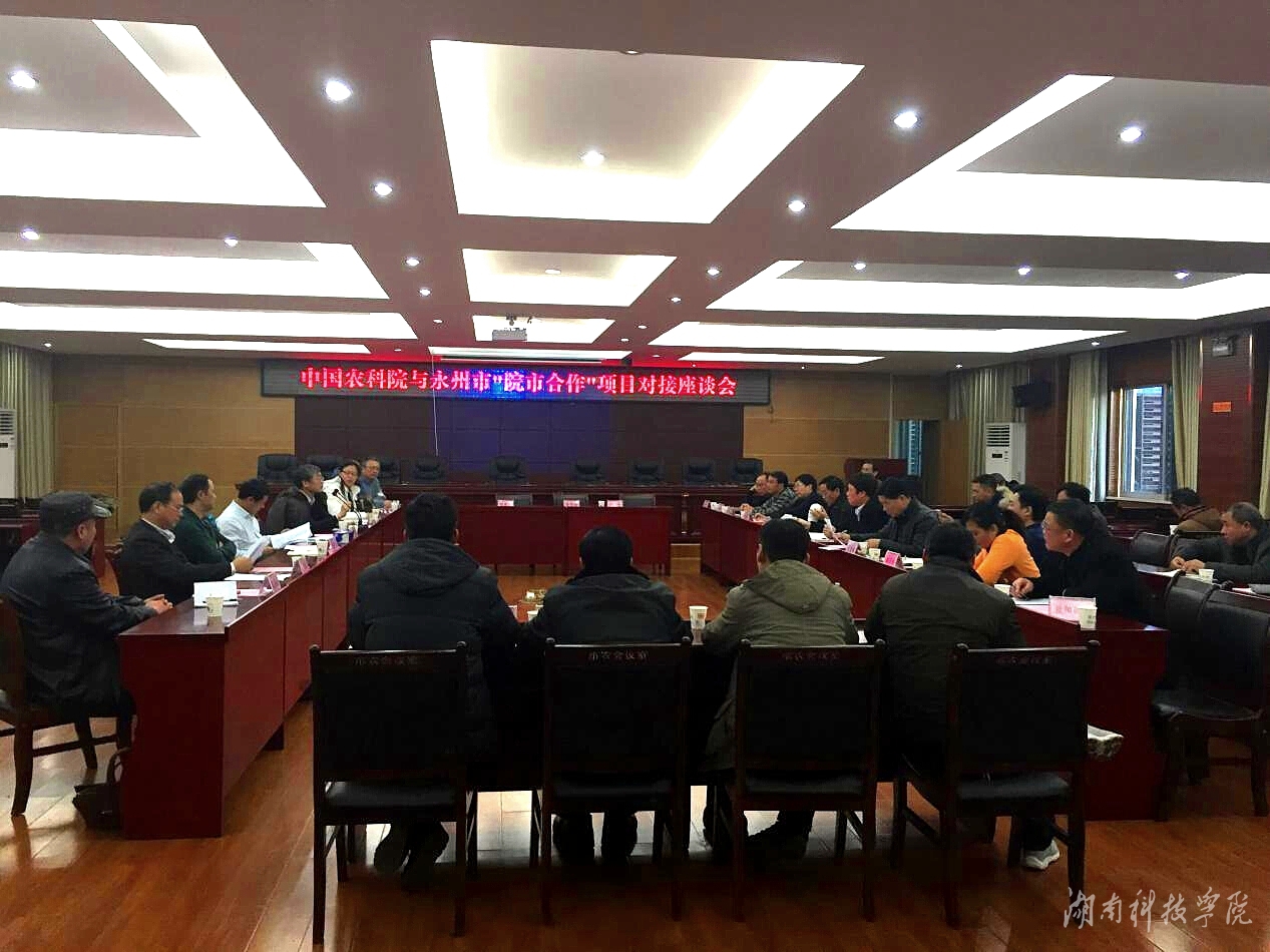 本网讯(刘小文)1月25日,中国农科院与永州市院市合作项目对接会在永州市农业委员会举行,vwin德赢作为项目成员单位参会。中国农科院植保所副所长文学、邱德文,成果转化处处长张东升,副研究员王秋霞博士,永州市政府副秘书长齐爱社,vwin德赢副校长宋宏福、化学与生物工程学院院长何福林等出席。座谈会由永州市农业委主任周善生主持。
