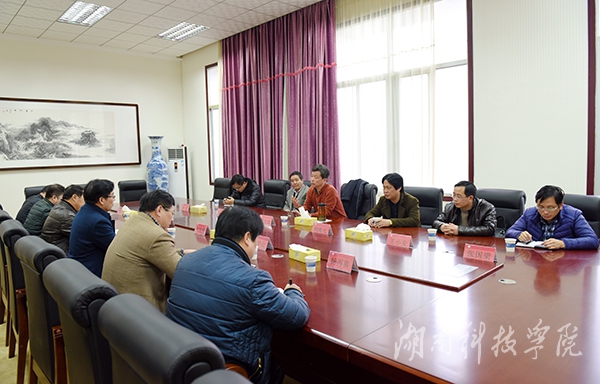 本网讯 (摄影 何帅文) 2月23日下午,永州市科学技术协会永州市科协党组书记、主席翟方奇一行来校考察交流,双方就“新春新学年,科普进校园”活动等进行深入探讨和交流。副校长宋宏福出席,宣传部、教务处、学工部、团委、科技处负责人参加交流活动。