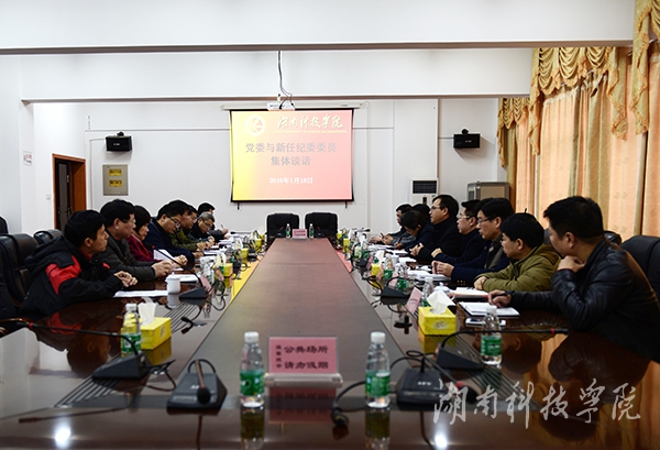 本网讯 1月18日上午,学校党委在行政办公楼六楼会议室召开新一届纪委委员集体谈话会。校党委书记陈弘出席并作讲话,要求新一届纪委委员要牢记使命和责任,凝聚共识,尽心履职,深入推进党风廉政建设和反腐败斗争,全面营造风清气正学校建设发展新生态。学校新一届党委委员、纪委委员参加会议。