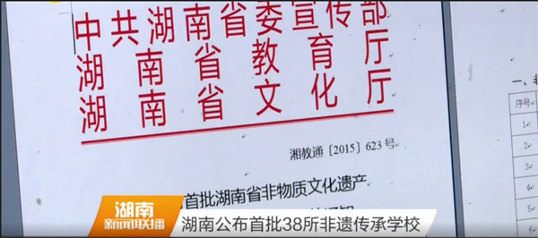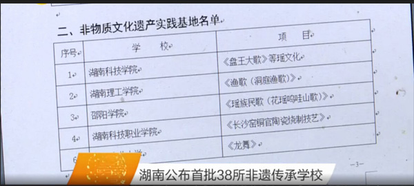 1月13日,湖南卫视新闻联播发布《湖南省公布首批38所非遗传承学校》,介绍vwin德赢《盘王大歌》等瑶文化项目。