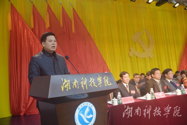他代表省委教育工委、省教育厅对学校发展提出四点希望:一是坚持从严治党,不断加强和改进党的建设。坚持党要管党、从严治党,是党的十八大以来党中央治国理政的战略方针,希望学校新一届党委认真贯彻落实中央和省委的决策部署,切实抓好学校党建工作。要全面落实管党、治党责任,牢牢树立抓好党建是最大政绩的理念,切实担负起管党治党的主体责任,坚持党建工作和教学科研工作一起谋划、一起部署、一起考核,党委书记要切实履行党建工作第一责任人的职责,党委班子成员要认真履行一岗双责,抓好分管领域的党建工作。要把从严治党的要求落实到党的思想建设、组织建设、作风建设、制度建设、反腐倡廉建设各方面和全过程。认真落实党委领导下的校长负责制,坚持学校党委的领导核心地位,建立健全党委统一领导,党政分工合作、协调运行的工作机制,把新一届领导班子建设成为政治坚定、作风优良、团结进取、务实高效、勤政廉洁的坚强领导班子。二是坚持立德树人,努力培养社会主义事业合格建设者和可靠接班人。要坚持把立德树人作为教育的根本任务,努力培养德智体美全面发展的社会主义建设者和接班人。学校党委要始终坚持社会主义办学方向,自觉把德育放在首位,把促进学生成长成才作为学校一切工作的出发点和落脚点,着力培养学生服务国家、服务人民的社会责任和勇于探索的创新精神、善于解决问题的实践能力。要把培育和践行社会主义核心价值观融于教育、教学的全过程,引导学生树立正确的世界观、人生观、价值观,为实现中华民族伟大复兴的中国梦贡献智慧和力量。三是坚持依法治校,全面推进学校综合改革。学校党委要从“四个全面”战略布局的高度,全面推进学校依法治校和综合改革,要把依法治校贯穿教育管理的全过程,以学校章程为依据,完善内部治理机构,理顺工作运行机制,进一步提升治理能力和治理体系现代化水平,真正做到用制度管权、管事、管人。四是坚持内涵发展,扎实推进应用型大学建设。面对新的形势、新的任务,新一届党委要把各项工作聚焦到以提高质量为核心的内涵式发展上来,加强制度建设和科研平台建设,主动融入区域经济发展,发挥人才培养高地、科技服务平台、政府决策智库、文化传承摇篮、品质活力名片的作用,全面提高人才培养、科学研究、社会服务和文化传承创新能力,努力创建省级转型发展示范性高校,全面建设一流应用型大学。