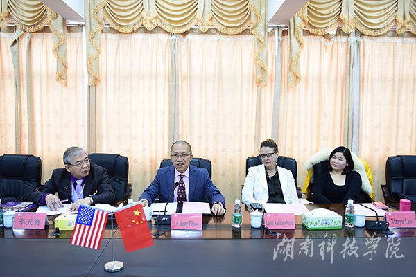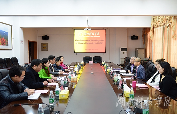 本网讯 12月19日至22日,美国尼亚加拉大学副校长Dr. Hung Le、李天宝教授、Kimberly主任一行来访,副校长宋宏福热情迎接。双方就加强两校在学术科研合作、教师海外研修等方面的合作展开洽谈,并签订教育领域合作意向书。