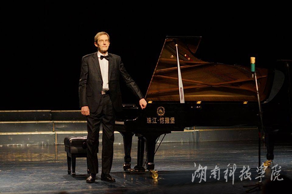 本网讯(记者 龙夏萍 姚新)12月22日晚,恩斯特•诺尔丁•豪夫钢琴独奏音乐会在音乐与舞蹈学院大演播厅举行。校党委书记陈弘,副校长宋宏福、郑山明饶有兴致地观赏了本场音乐会。