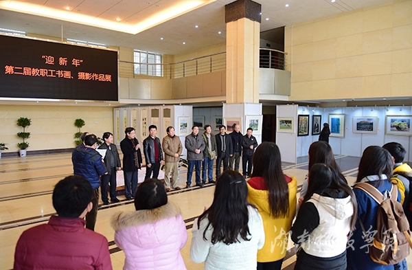 陈仲庚对本次展览开展表示热烈祝贺。他说,教职工们的作品内容广泛,格调高雅,描绘了新时代灿烂的生活画卷,展现出学校教职工良好的精神面貌。陈仲庚还为本次书画摄影展题词,“贺喜迎新春教职工书画摄影展圆满成功”。