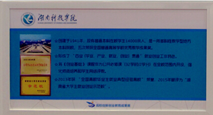 与此同时,学校还在不断强化就业与创新创业实践指导,提高大学生就业创业指导服务实效。即,健全大学生就业创业指导服务专门机构,今年专门成立了校就业创业指导中心,做到“机构、人员、场地、经费”四到位,对就业与自主创业学生实行持续帮扶、全程指导、一站式服务。健全信息服务制度,完善大学生就业与创新创业服务网功能,建立了“湘科院就业创业微信公众平台”,为学生实时提供国家政策、市场动向等信息,并做好创业项目对接等服务。自主编制专项培训计划,或与有条件的教育培训机构、行业协会、群团组织、企业联合开发创业培训项目。