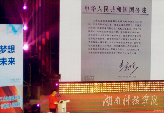 谈到未来的创业创新教育,校党委书记陈弘的眼里闪烁着信心:“从这次大赛中,我们可以看出,我们的学生都是非常有潜力的。世上无难事,只要我们尽最大力量引导、扶持他们,未来的湘科院创业学子一定会成功!(就业创业指导中心)