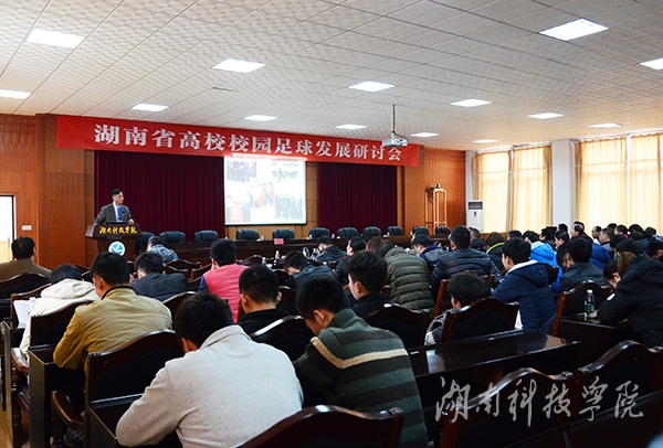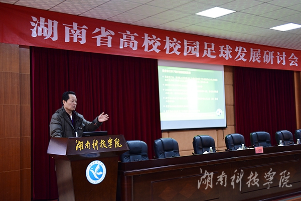 本网讯 12月18日至19日,高校校园足球发展研讨会在vwin德赢举行。与会专家围绕高校校园足球发展及充分发挥足球育人功能、培养全面发展人才展开深入研讨交流。湖南省教育厅副巡视员郭建国及校长曾宝成,副校长宋宏福、程智开等出席论坛开幕式。论坛吸引了来自省内各高校的体育学院院长和专家学者40余人出席。校党委书记陈弘专门撰文《足球与教育》,阐述足球与教育的关系,提出“文明学生的精神,强健学生的体魄,是教育的本义,两者不可偏废。”