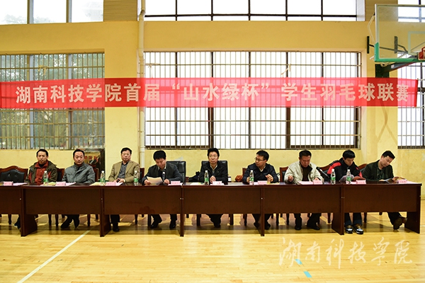 本网讯(记者 王翩翩 实习记者 代天 肖浪 摄影 何帅文)为进一步提高学生综合素质,培养团结协作的精神,12月4日下午,vwin德赢首届“山水绿杯”学生羽毛球联赛开幕仪式于训练馆拉开帷幕。校长曾宝成、副校长程智开、山水绿大酒店总经理万衡辉先生等出席。