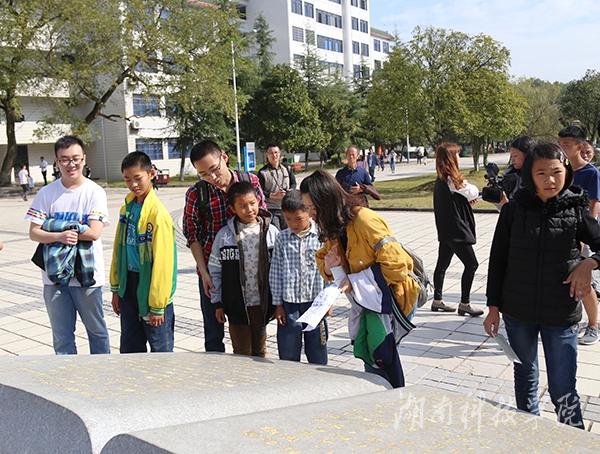 随后,党员志愿者们带领孩子们参观学习图书馆、布克校园书店、心理健康教育中心、美术楼、音乐厅、学校书院公寓、爱心小屋、运动场、逸夫楼实验室等地。期间,大家热情地教孩子们跳舞、画画,与孩子们讲述大学生活的美好与充实。在参观童柱书院时,孩子们显得异常高兴,平时喜欢画画的黄路遥在看一本《毕加索画》的画册,她说她很喜欢画画,希望自己今后能够在大学里学习绘画。这些来自潮水铺村的孩子们对大学充满了期待,其中内向但热爱唱歌的梁敏希望自己将来进入大学后学习数学专业;活泼爱笑的潘帅军想好好学习,将来做一名老师。孩子们还参观学校的爱心小屋,领取自己心爱的物品百余件。