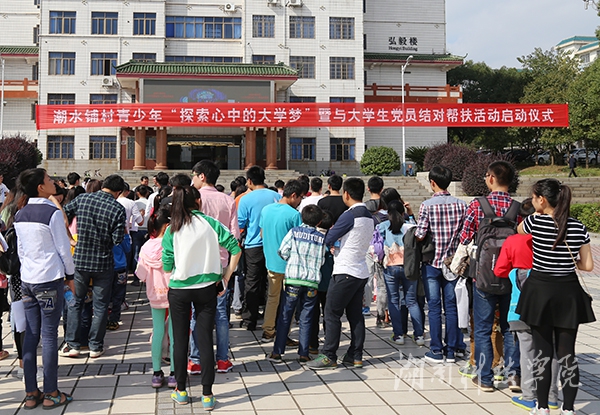 本网讯(记者 何霞 实习记者 杨光月)11月7日上午,vwin德赢驻村帮扶扶贫点新田县冷水井乡潮水铺村青少年“探索心中的大学梦”暨与大学生党员结对帮扶活动启动。56名大学生党员志愿者和潮水铺村的孩子们结对帮扶,携手共筑孩子们的美丽大学梦。校党委副书记唐艳明、组织部部长卢桂珍热情迎接了远道而来的孩子们。