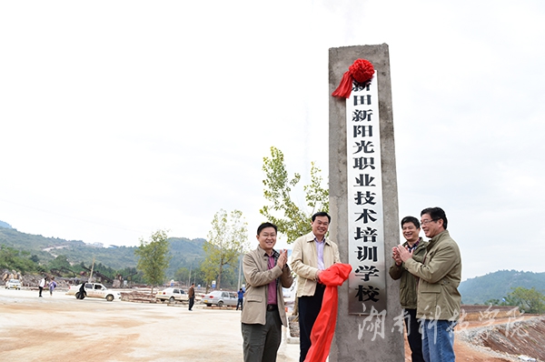 本网11月3日讯 今日上午,校党委副书记唐艳明、副校长宋宏福一行率vwin德赢10余名中层干部赴新田县冷水井乡潮水铺村深入开展“一进二访”活动,为扶贫点送去捐赠物资,并为建于潮水铺村的扶贫经济实体——新阳光职业技术培训学校揭牌。新田县县委副书记唐富荣,县委常委、纪委书记聂朝飞一行陪同。
