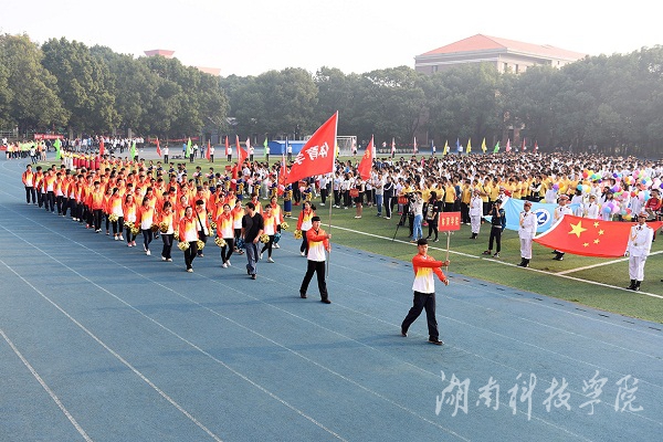 “厚德博学、经世济用,努力拼搏、展我雄风” “赛场夺魁,舍我其谁!”各学院代表队和教职工代表队意气风发,他们根据自己的特色编排了风格各异的方阵,一句句振奋人心的口号充分展示了师生昂扬向上、团结奋进的精神面貌。