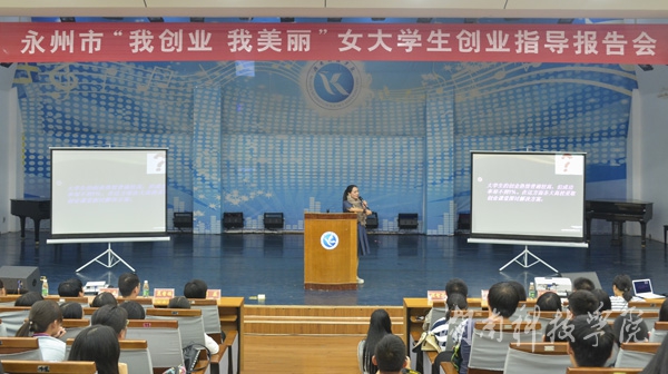 副校长程智开、永州市妇联副主席魏秋云等出席会议,此次报告会是省妇联和省教育厅举办“我创业,我美丽”女大学生创业指导巡回报告会九场之一,旨在和女大学生的思想进行一场交流,让女大学生重新定位自身价值,创造出更加精彩的人生。