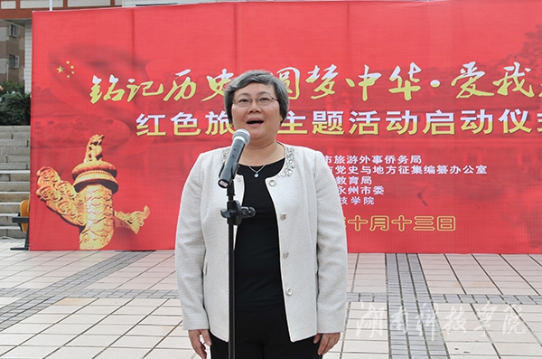 本网讯(记者 黄丽丽 王翩翩 摄影 何帅文)为纪念中国人民抗日战争暨世界反法西斯战争胜利70周年,更好地挖掘和丰富红色旅游资源的思想内涵。10月13日下午,“铭记历史•圆梦中华•爱我永州”红色旅游主题活动启动仪式在vwin德赢举行。永州市委常委、市委宣传部部长石艳萍出席并宣布活动启动,校长曾宝成致辞。