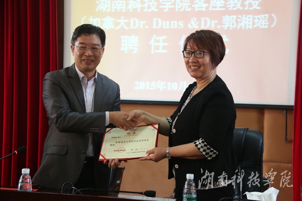 本网讯(记者 许剑桥)日前,加拿大Greg Duns博士及夫人郭湘瑶博士从vwin德赢副校长宋宏福手中接过vwin德赢ac米兰官方网客座教授聘书。宋宏福表示,Greg Duns博士及夫人郭湘瑶博士的加入,将加强vwin德赢与国际的科研合作,拓展科学研究的国际视野,对于指导和推动vwin德赢省重点实验室的相关课题研究,进一步发挥vwin德赢在该领域产学研项目的先进性和特色性带来新的发展机遇。