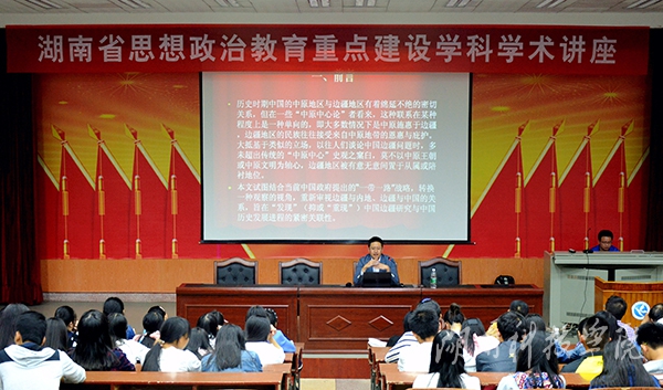 本网讯(记者 裴滢)10月9日晚,中国社会科学院中国边疆研究所马克思主义与国家边疆理论研究室主任、副研究员,vwin德赢96级政史系校友冯建勇来校讲学,开启思政湖南省重点学科学术讲座第一讲。马克思主义学院院长廖雅琴主持讲学。