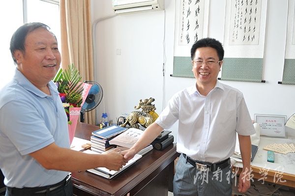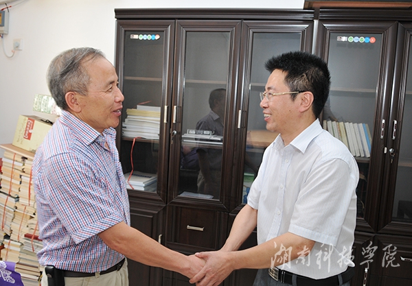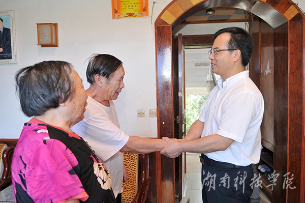 陈弘一行首先来到老领导周嗣海和唐朝阔家中,与两位老教授亲切长谈,详细询问他们的身体、生活等状况,并代表学校党委向他们送上鲜花,表达亲切的问候和温馨的祝福。陈弘握着他们的手,深情地说,学校的发展离不开老同志们的关心和支持,我们要将老同志们艰苦奋斗、乐于奉献的精神传承和发扬下去,为地方经济建设发展服务。陈弘特别叮嘱随行相关部门负责人,要切实服务好老领导老同志,为老同志们安度晚年生活营造舒适的环境。
