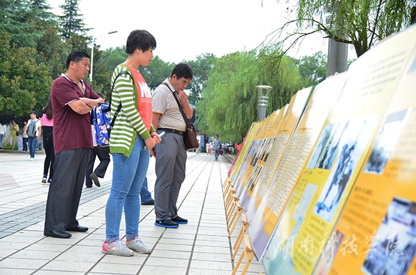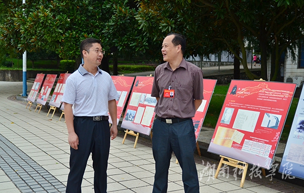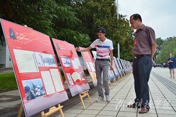校长曾宝成、副校长程智开以及零陵区区委常委、区委办公室主任彭江辉亲临现场观看图片展。曾宝成表示,中国人民抗日战争暨世界反法西斯战争胜利70周年之际,我们回望历史,缅怀先烈,具有重要的现实教育意义,希望广大师生牢记历史,珍爱和平,砥砺奋进。